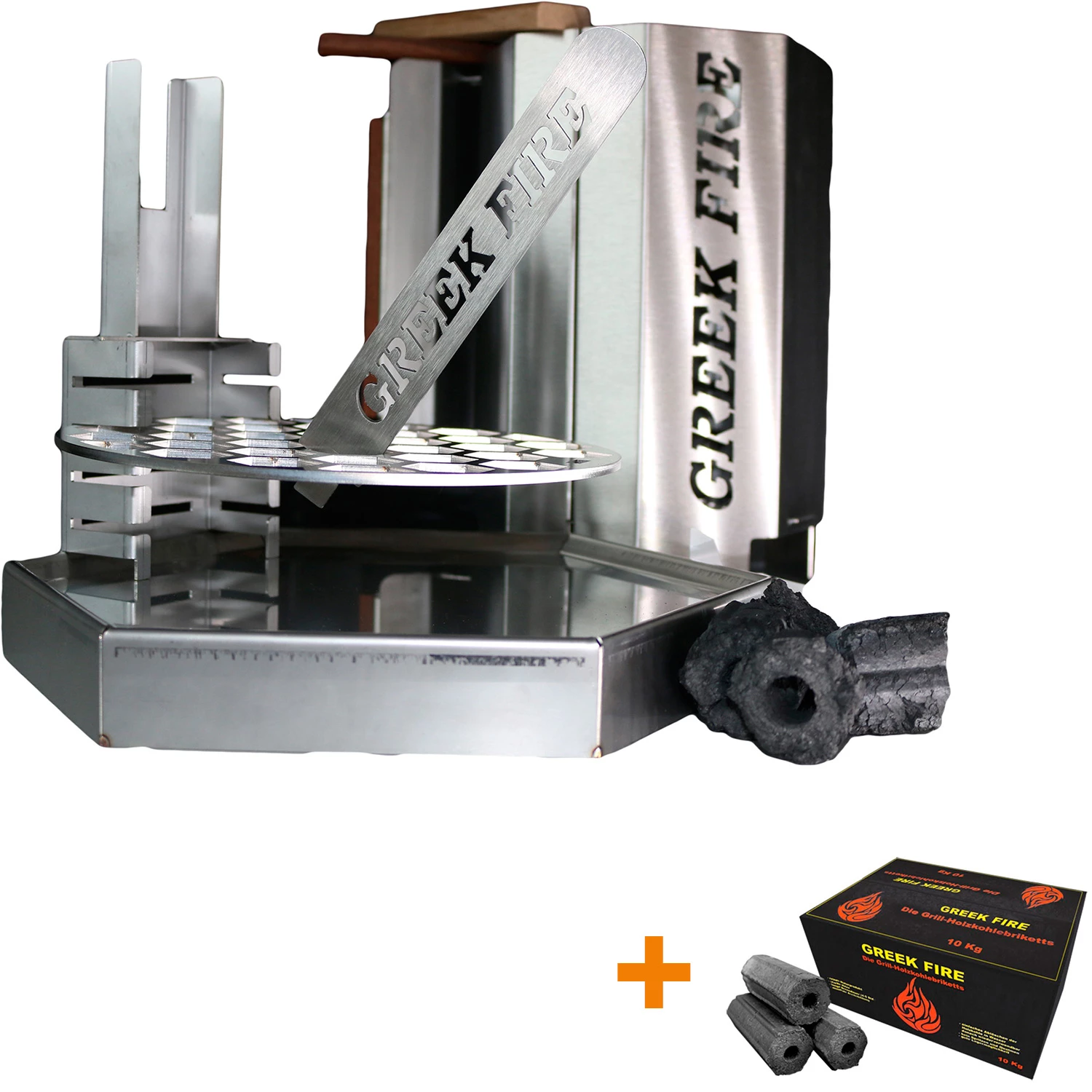 Damit Sie sofort mit dem Greeken starten können, haben wir ein Set aus dem Greeker und zusätzlich einem 10 kg Paket Greek Fire Holzkohlebriketts geschnürt. Wir wünschen viel Spaß mit dem Greeker.