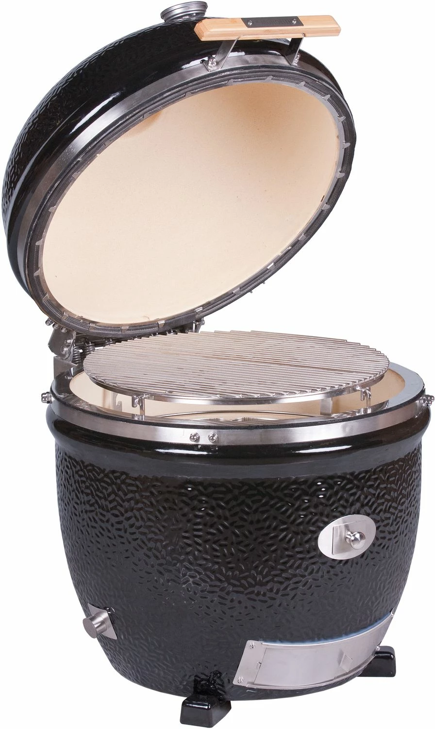 Zunächst: Das komplette Innenleben der Keramikgrills hat sich zur Pro-Serie 1.0 nicht verändert. Hier ist alles beim bewährten und genialen SGS-Grillrosystem und mehrteiliger Feuerbox geblieben. Die Updates befassen sich mit kleinen aber entscheidenden Details: