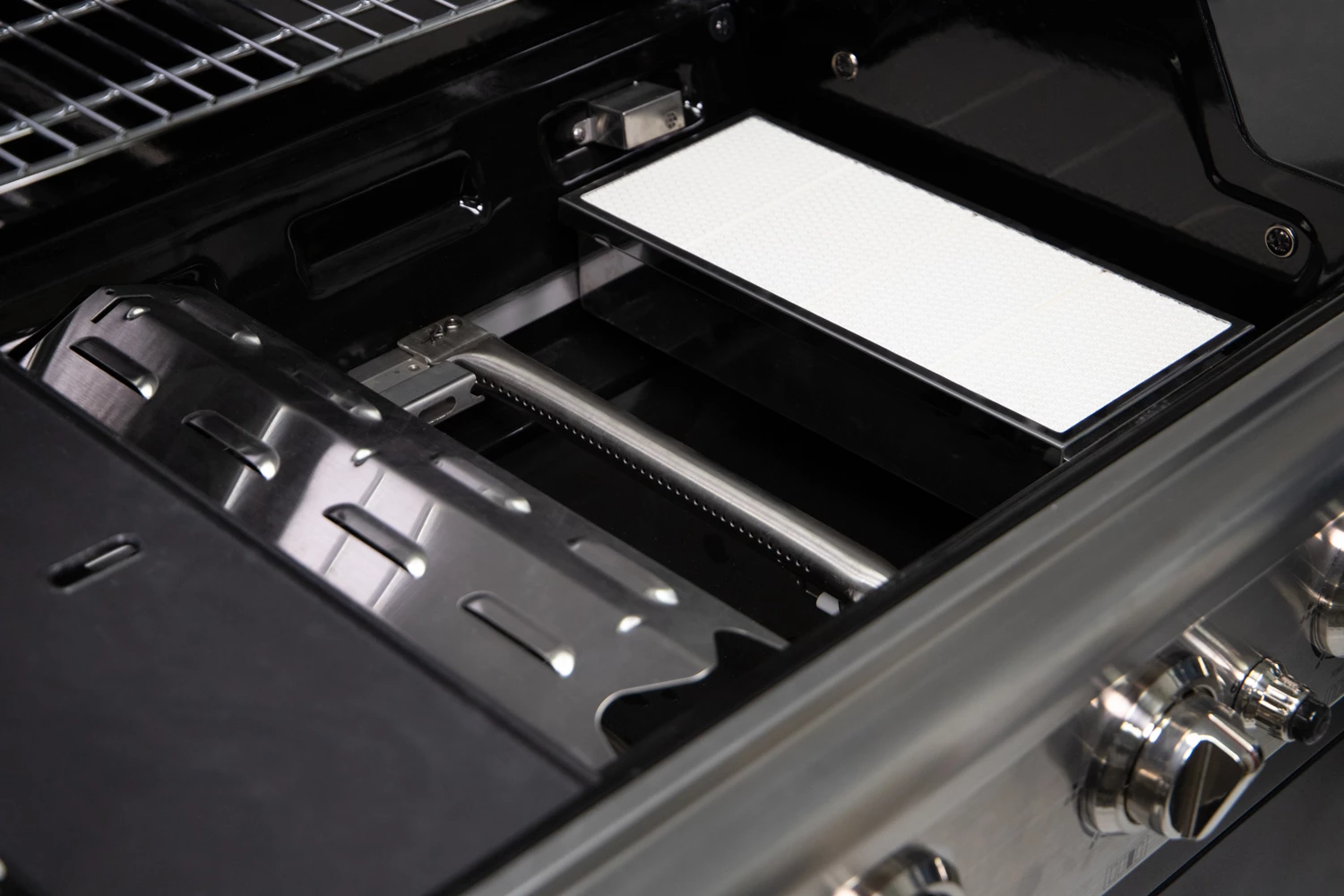 Unter der Hauptgrillfläche des 455 G verbergen sich 3 besonders leistungsstarke Edelstahlbrenner mit einer Gesamtleistung von 12,6 kW.