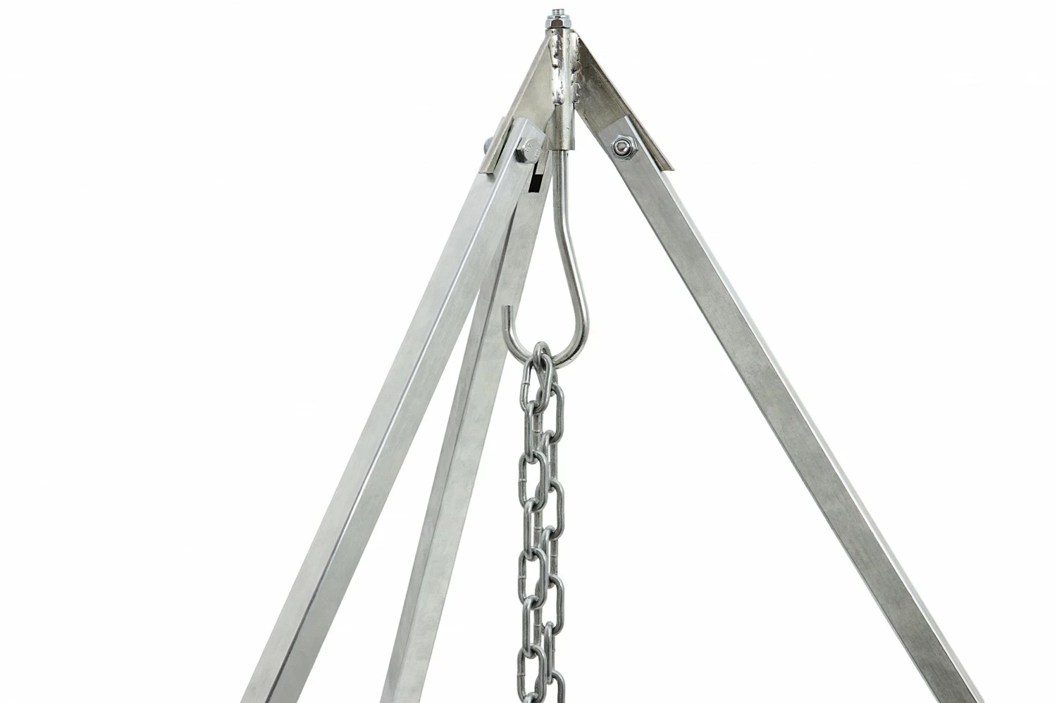 An dem robusten Gestellt mit Haken können Sie neben den verschiedenen Dutch Oven natürlich auch einen Grillrost (z.B. der Petromax Hängerost) oder die Peteromax Hänge-Feuerschale befestigen und das Dreibein zu einem Schwenkgrill machen.