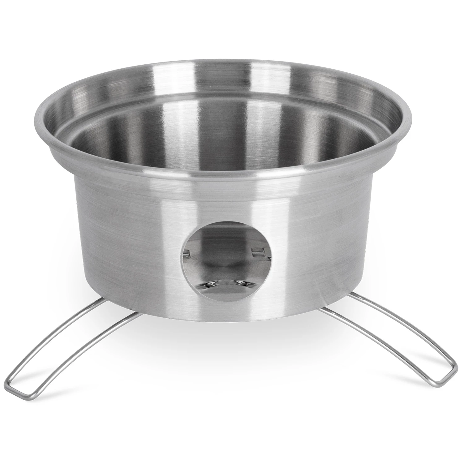 Der doppelwandige Aufbau der Feuerkanne bringt in der Wassertasche bereits wenige Minuten nach dem Entzünden des Feuers das Wasser zum Kochen. Die Dampfpfeife signalisiert, dass das Wasser den Siedepunkt erreicht hat.