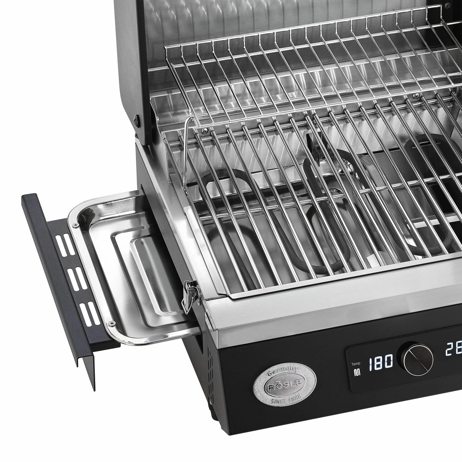 - Fettauffangschale aus Edelstahl – seitlich entnehmbar