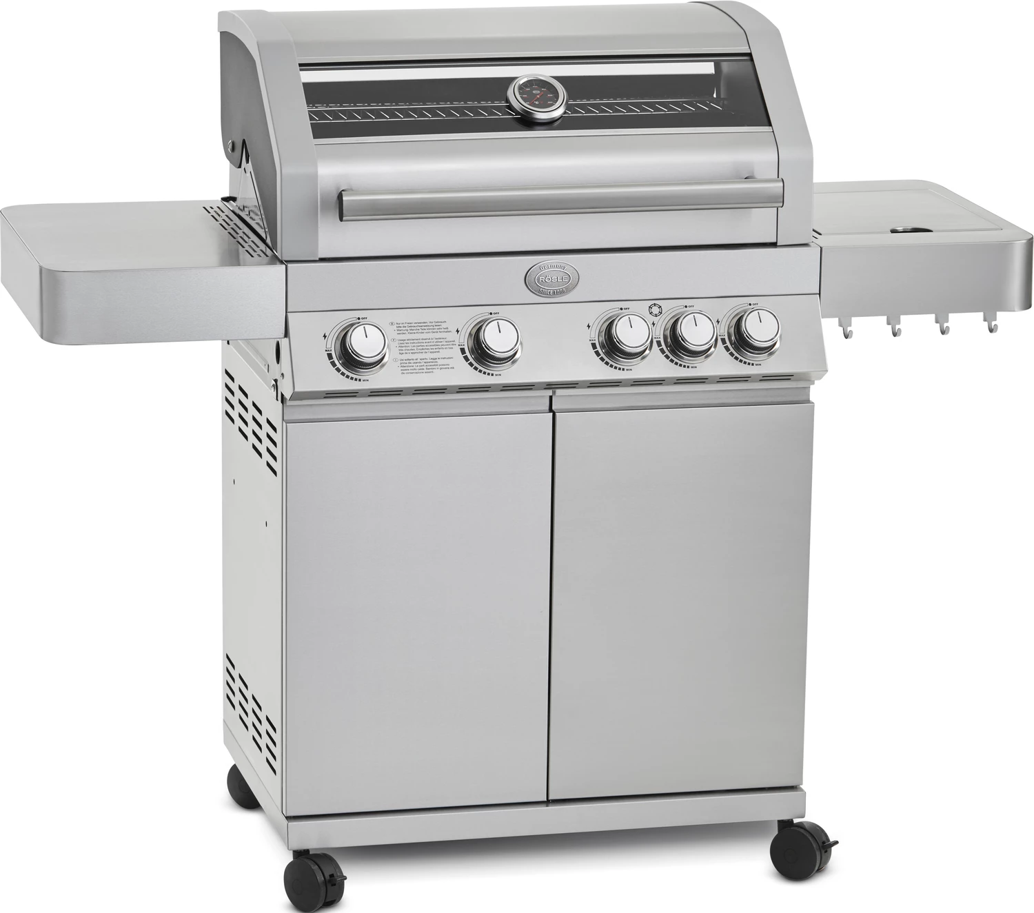 Die Rösle BBQ-Station Videro G4 mit Edelstahlbrennern und Seitenkocher