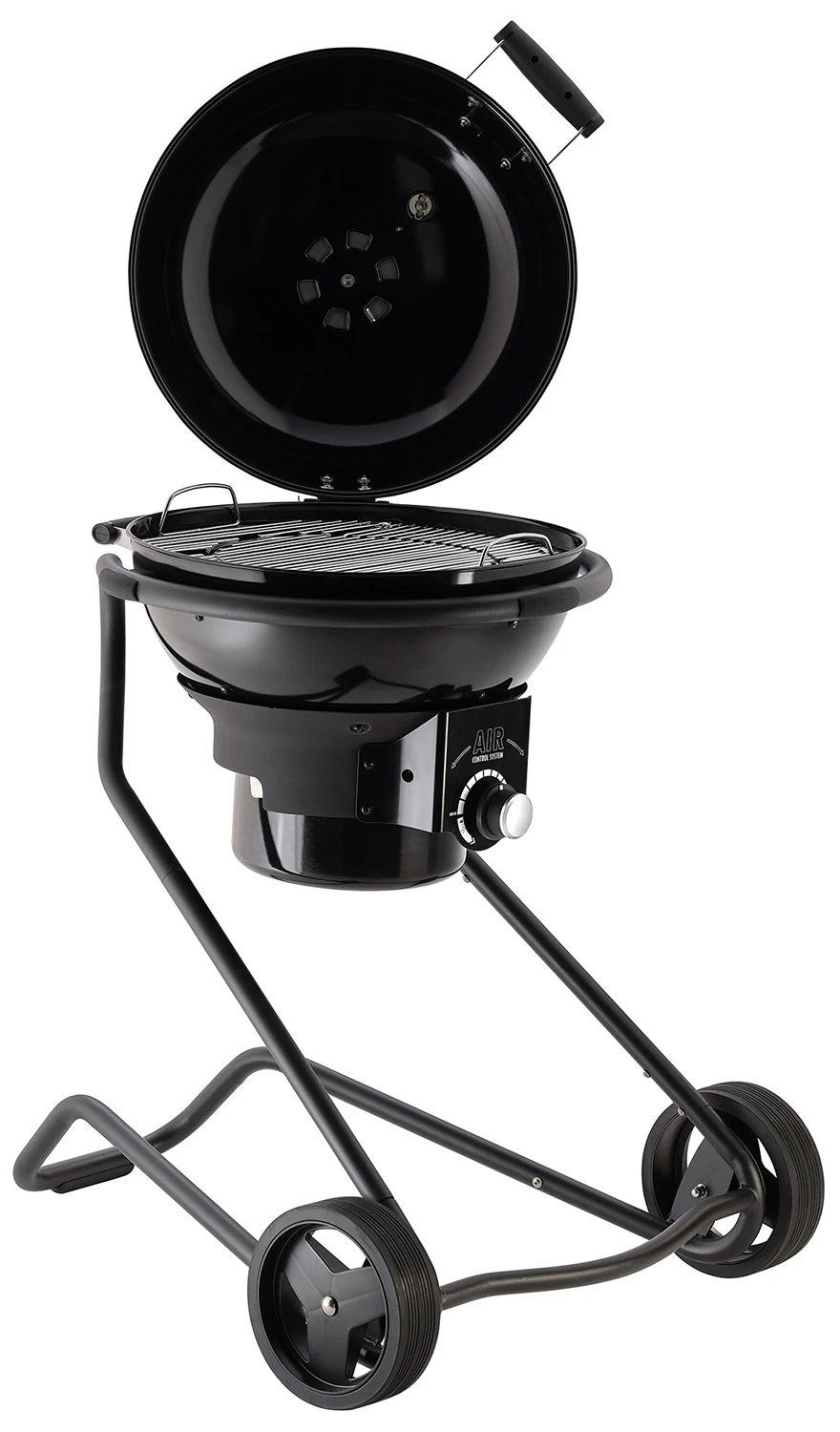 Das patentierte AIR Control System lässt sich im wahrsten Sinne des Wortes im Handumdrehen steuern. Hierfür befindet sich unterhalb der Grillkugel auf Höhe des Aschebehälters ein großer Drehknopf, mit dem sich die Menge der Zuluft ganz einfach regulieren lässt. Zusammen mit dem mit dem gut ablesbaren Deckelthermometer können sie die Temperatur im Inneren immer exakt den Bedürfnisse anpassen.